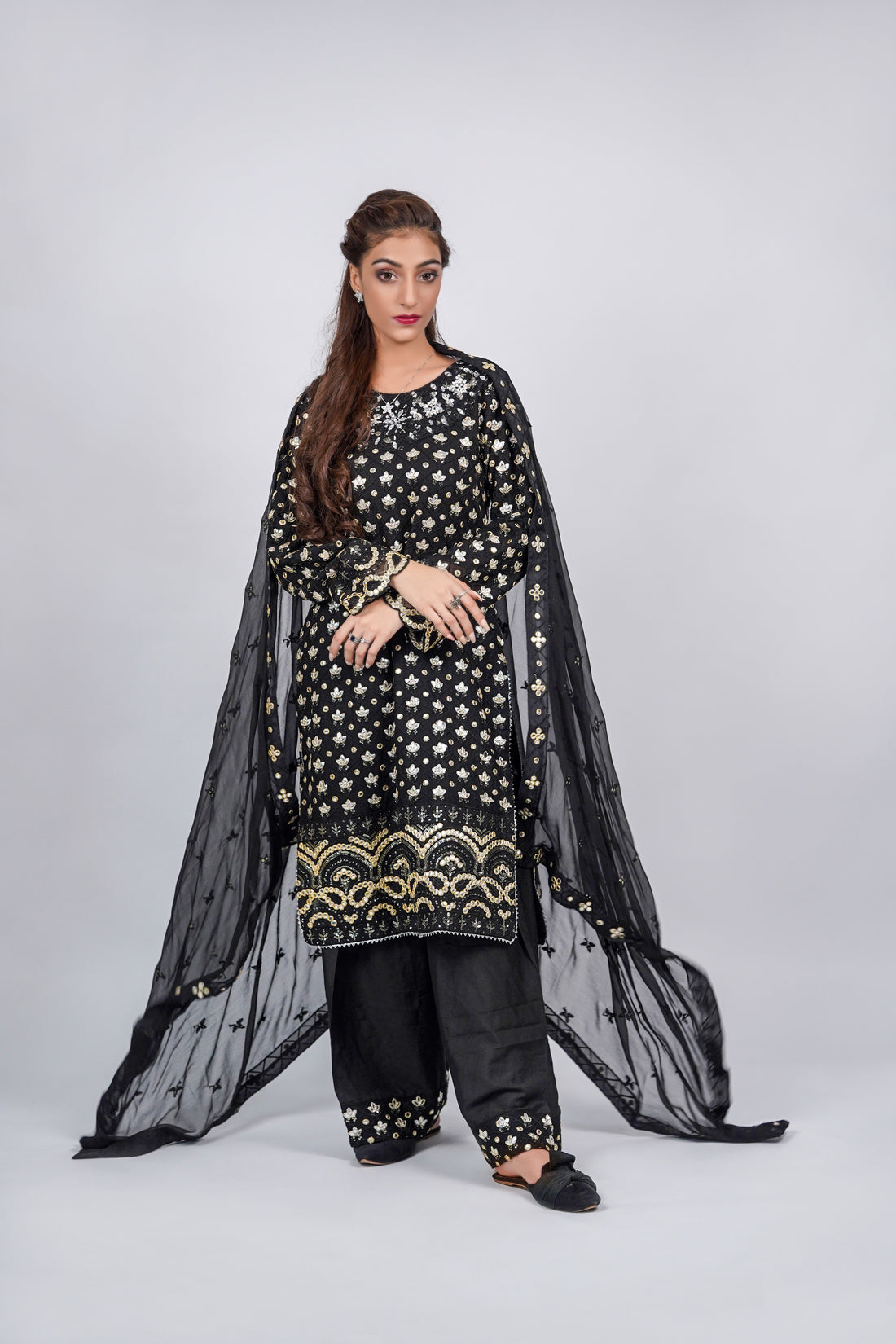 Magician – 3pcs Embroidered Chiffon Maxi Set with Mirror Handwork & Dupatta
