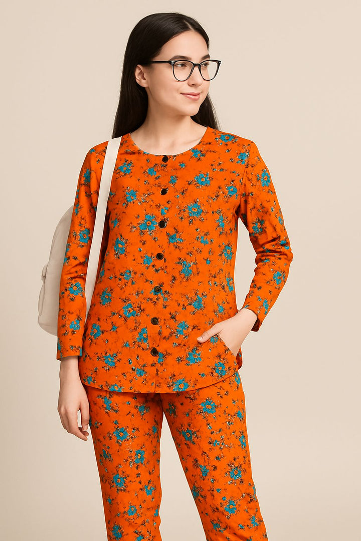 Shirt Design: Round-neck, button-down shirt offering a clean, polished look