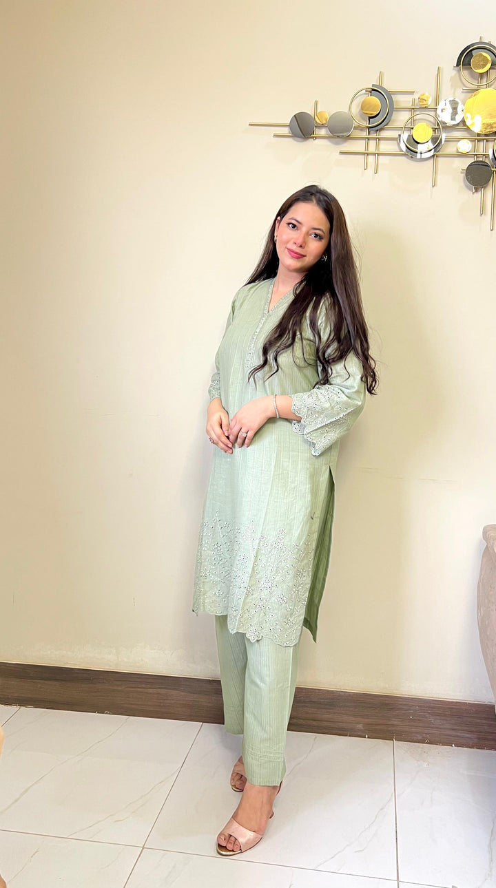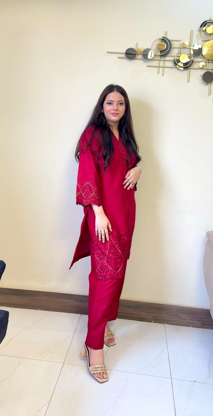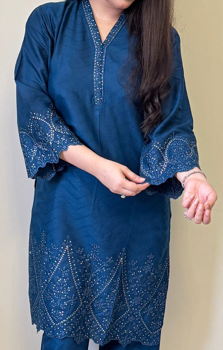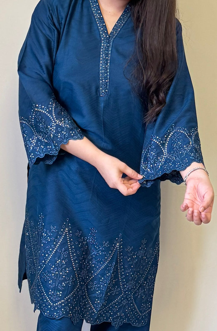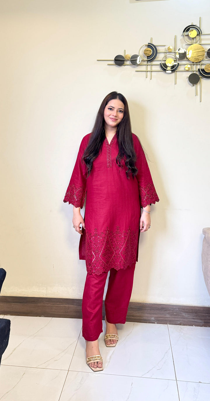 Diamond 2-Piece Embroidered Cotton Jacquard Set, crafted from luxurious cotton self jacquard fabric for all-day comfort and style. This elegant ensemble blends traditional charm with contemporary design, making it a versatile choice for both daytime elegance and evening poise.