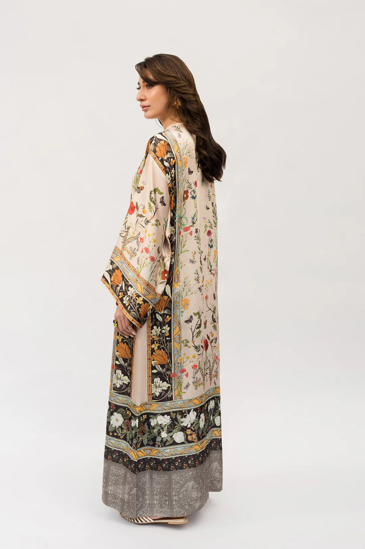 Introducing Rosh’s Love n Dove Cord Set, crafted in premium crepe silk for a smooth, graceful drape. The 50-inch long shirt features intricate botanical artwork with soft floral detailing, giving the outfit a refined, feminine charm. Paired with a sleek bell-bottom trouser, the silhouette stays modern, flowy, and effortlessly elegant.