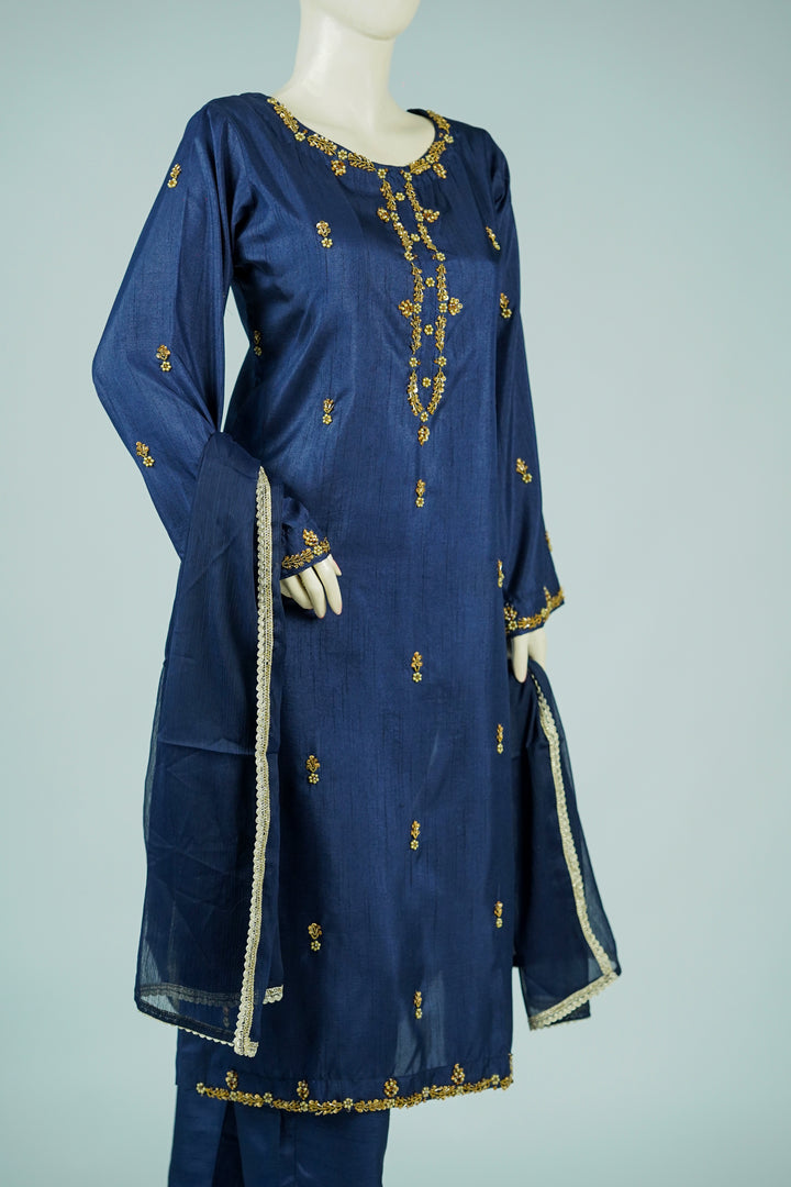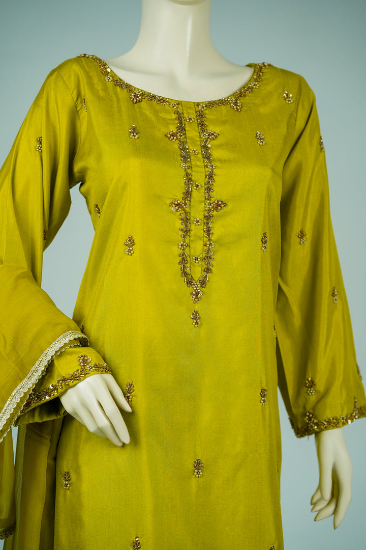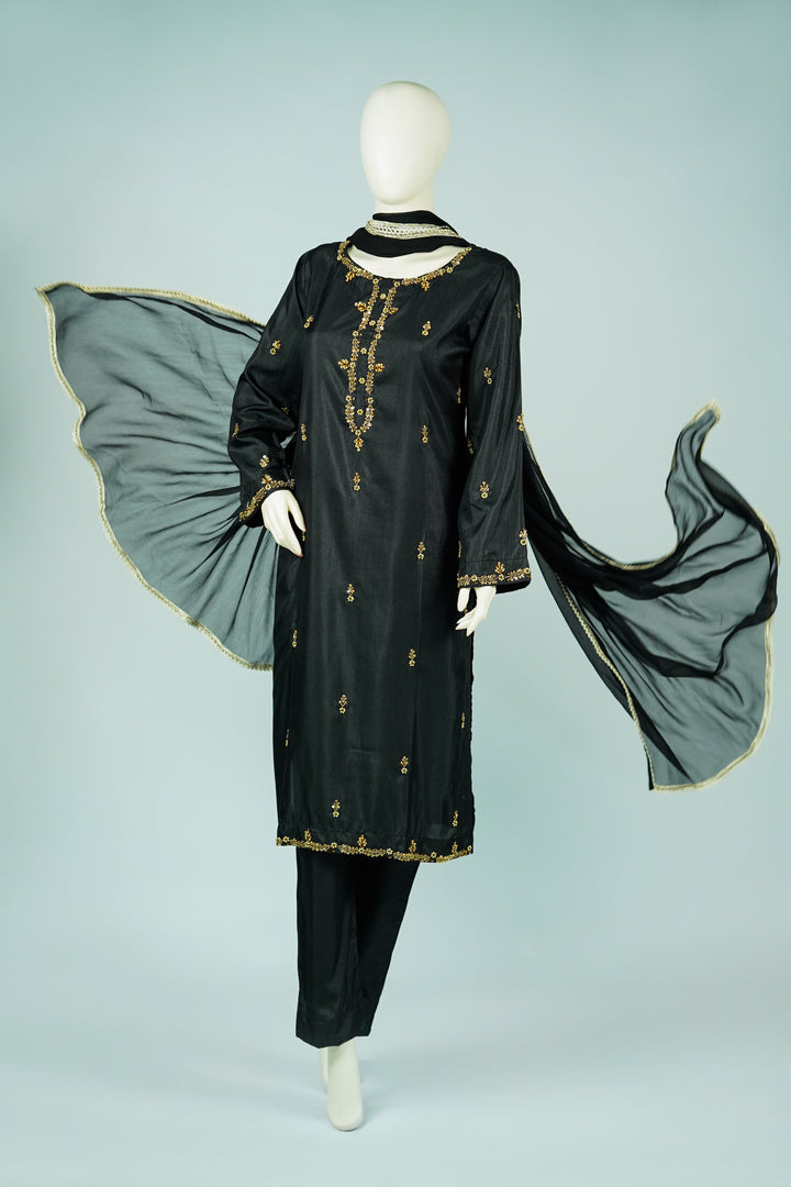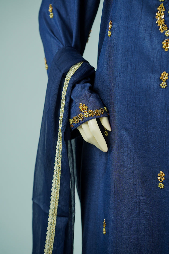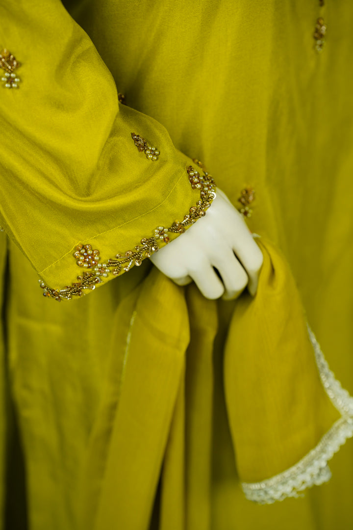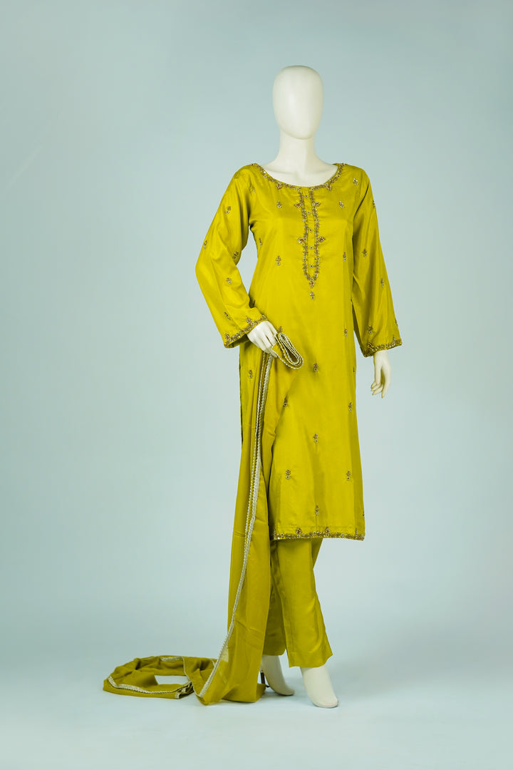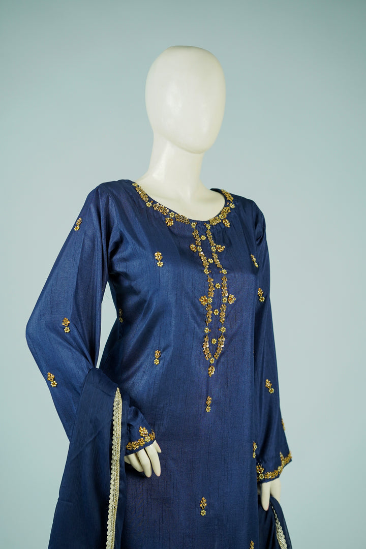 Safroon Handcrafted 3-Piece Russian Silk Ensemble, a luxurious outfit crafted to perfection for the modern woman with a taste for tradition. This design is a stunning blend of premium Russian silk, intricate hand embellishments, and graceful tailoring—ideal for weddings, festive celebrations, and formal gatherings.