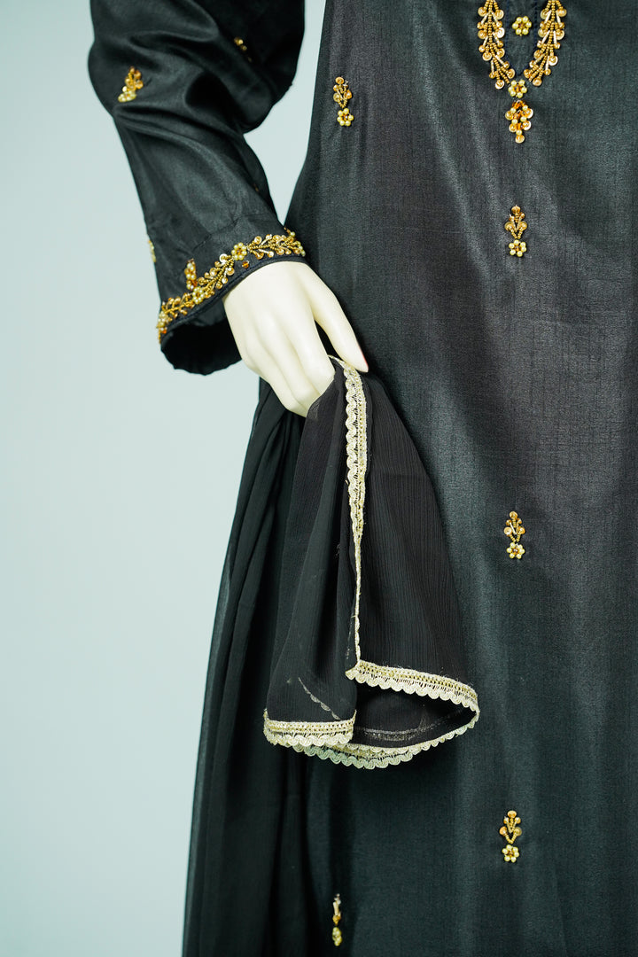 Dupatta: A lightweight chiffon dupatta completes the ensemble, adding flow and grace to the overall aesthetic.