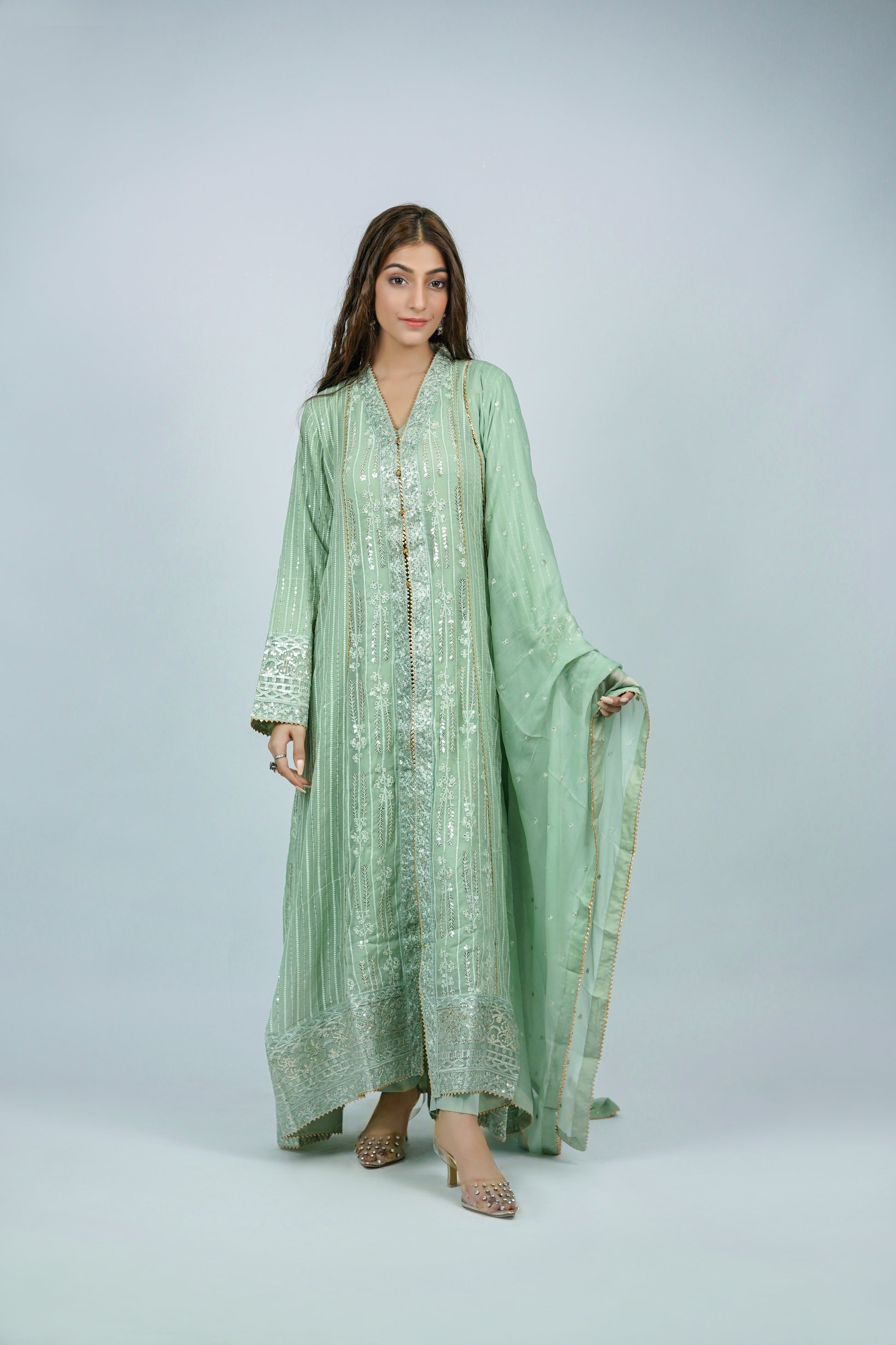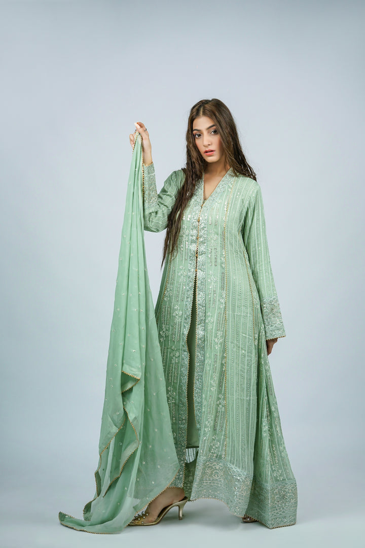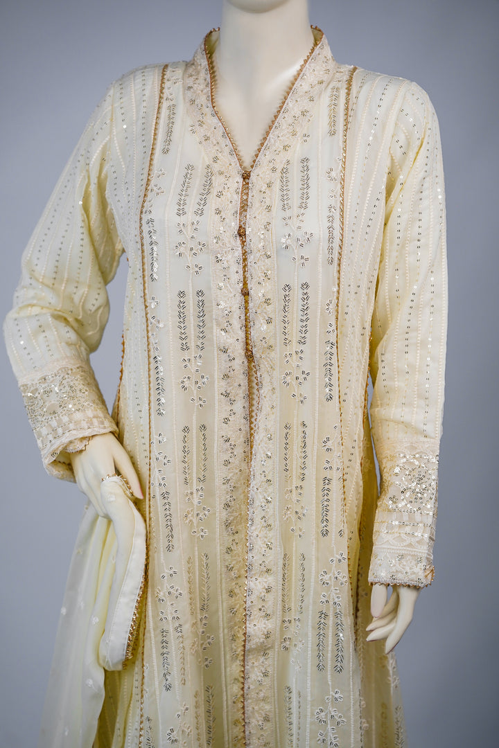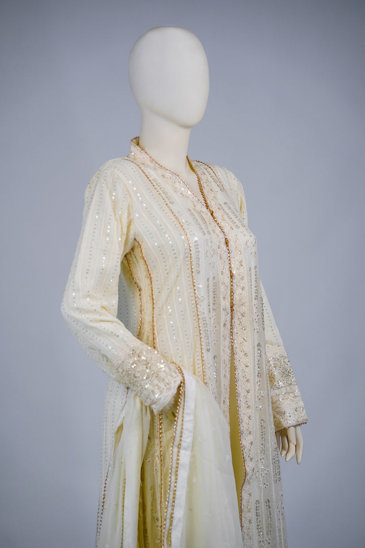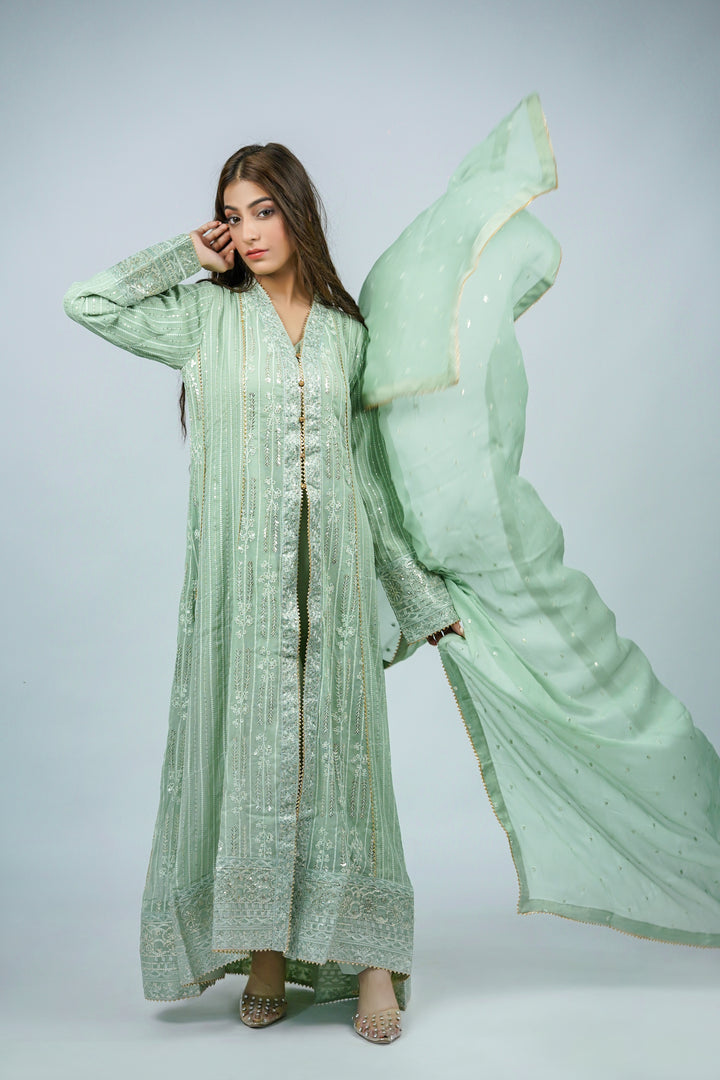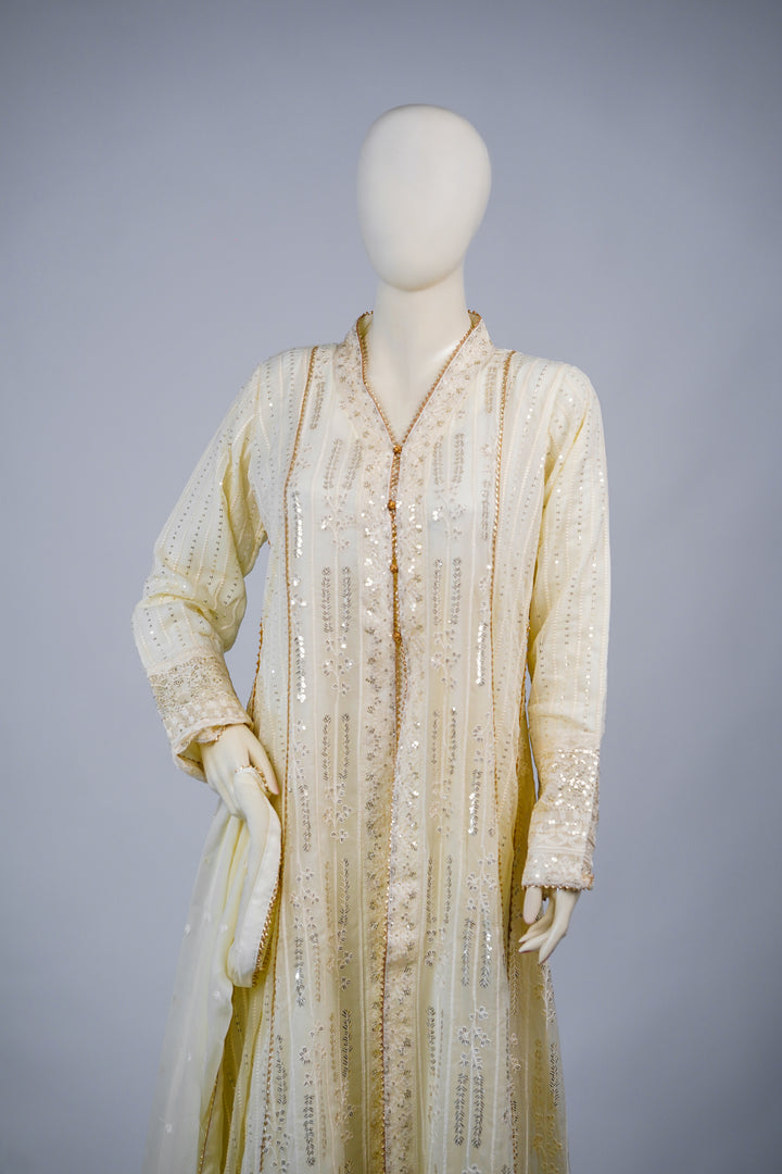 Dupatta: Finished with a matching embroidered chiffon dupatta, light and refined, bringing the entire ensemble together with soft, graceful movement.