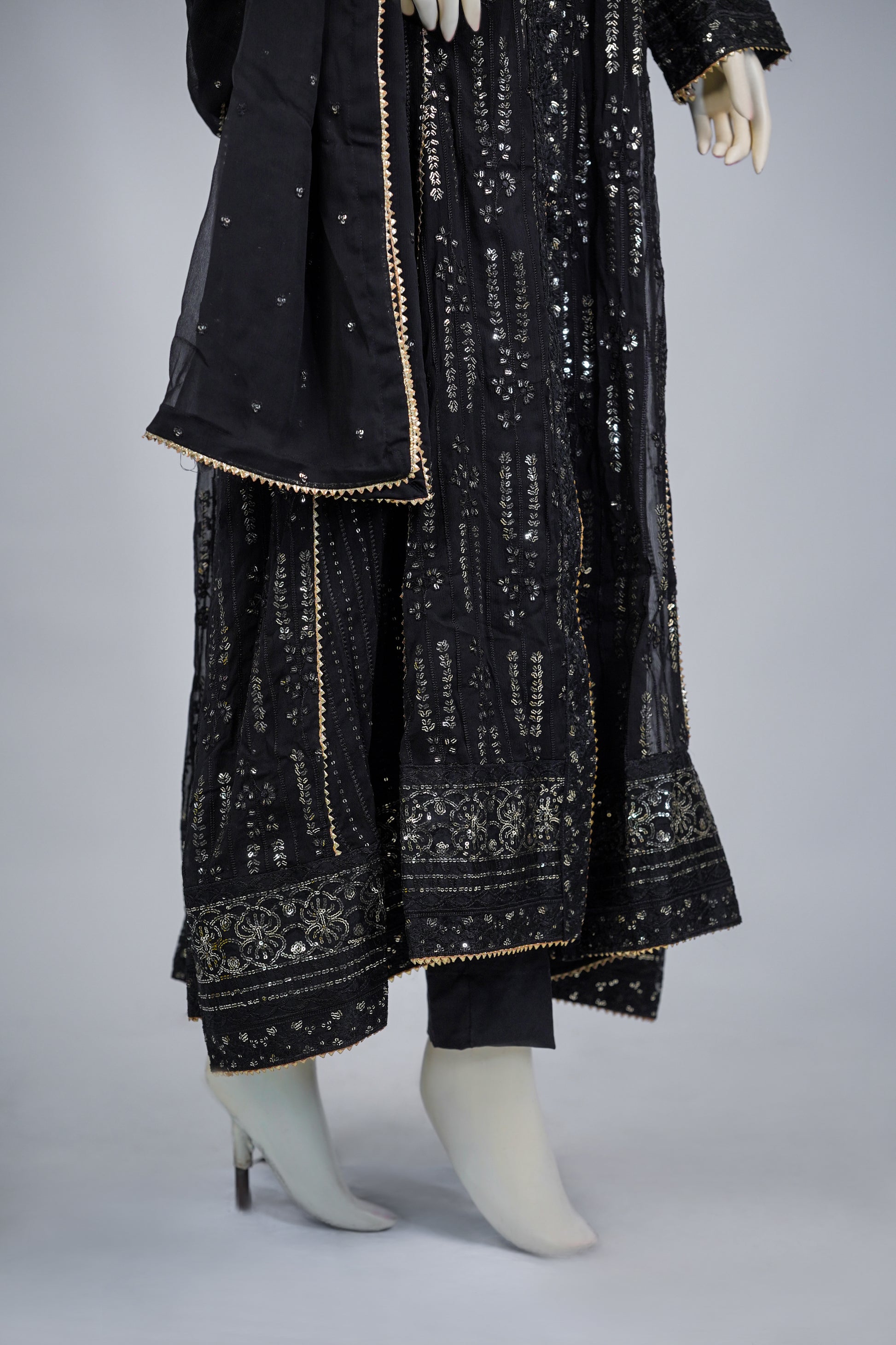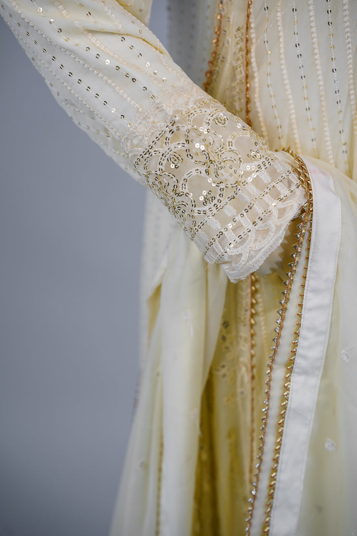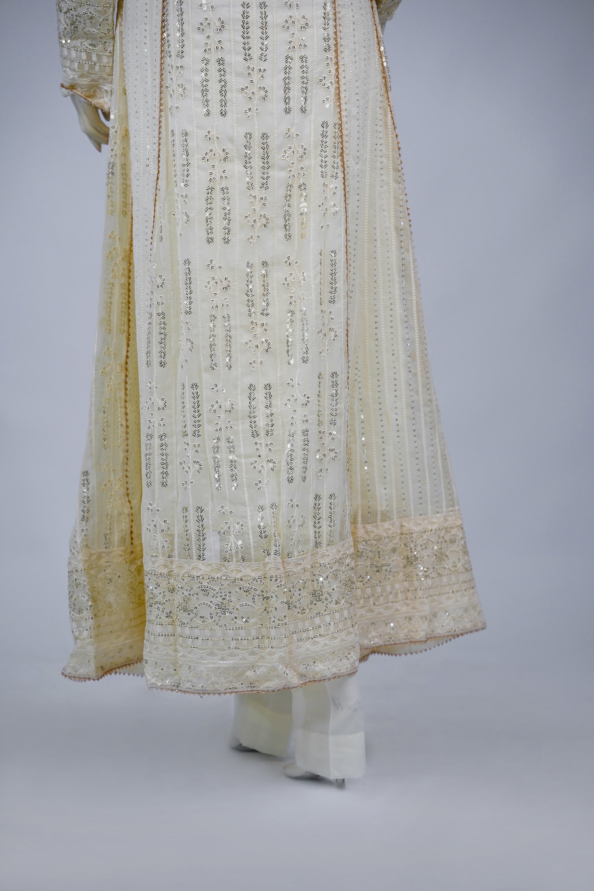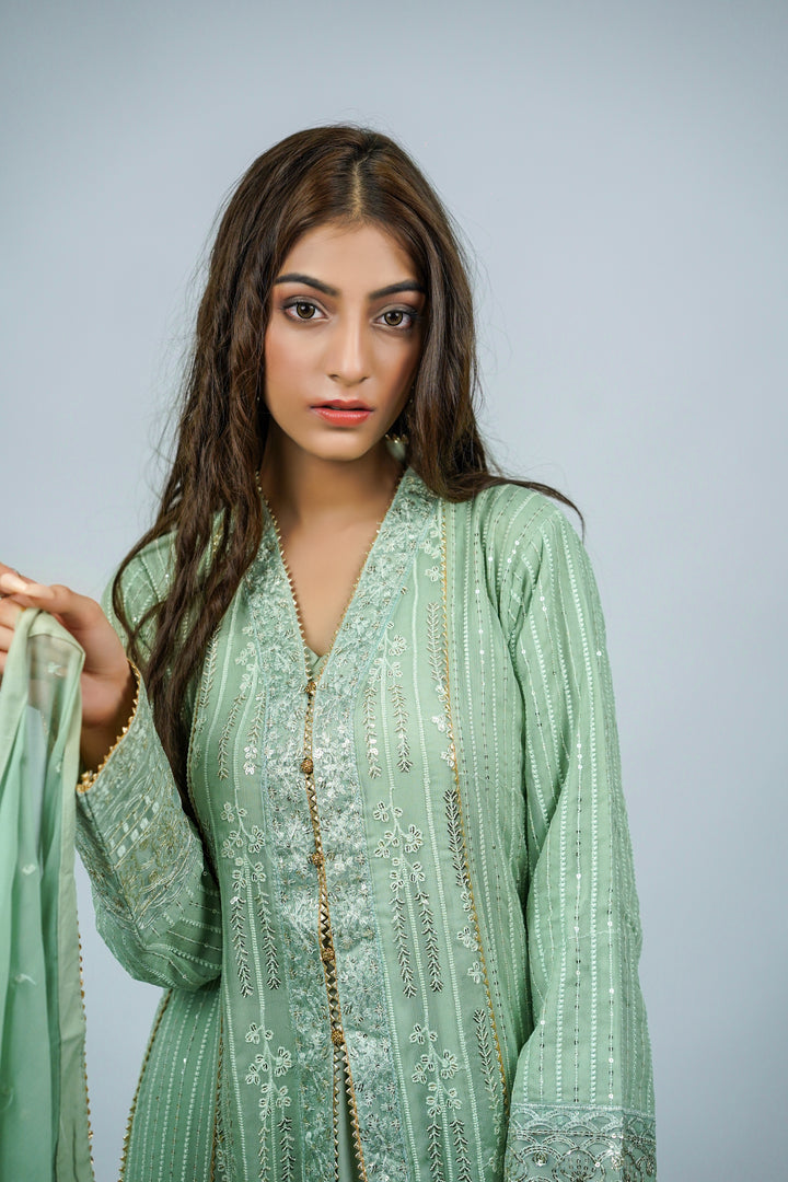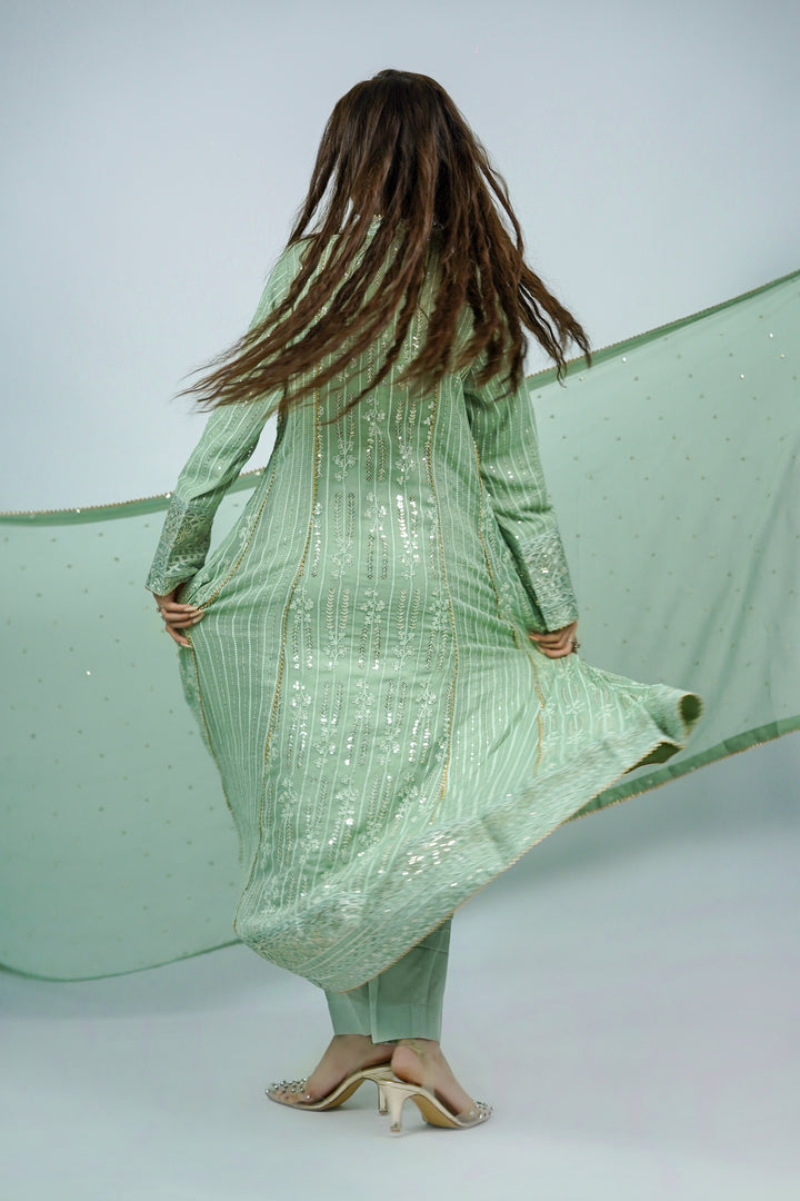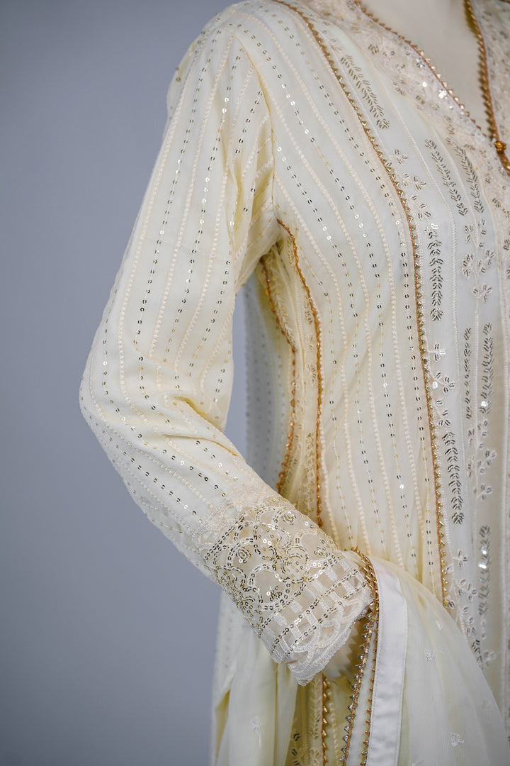 Dupatta: Finished with a matching embroidered chiffon dupatta, light and refined, bringing the entire ensemble together with soft, graceful movement.