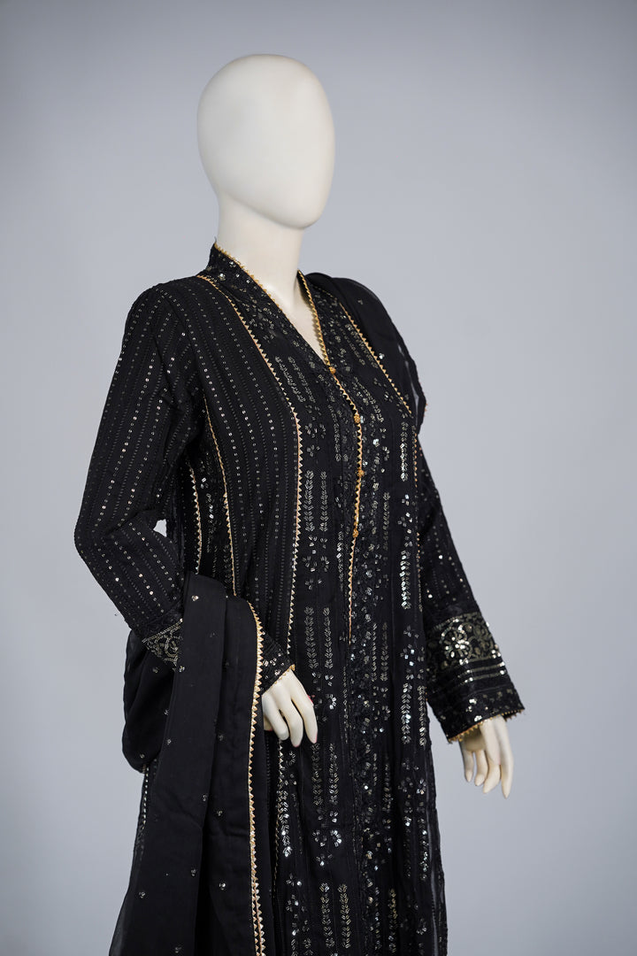 Unicorn – a beautifully crafted 3-piece embroidered chiffon maxi set, designed for the modern woman who values grace, sophistication, and a touch of regal flair. Ideal for festive occasions, weddings, and formal gatherings, this ensemble effortlessly combines traditional embroidery with contemporary styling.