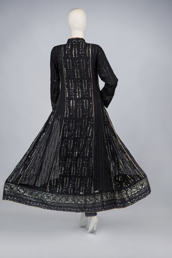 Maxi Dress: Made from flowing chiffon fabric, the maxi features full embroidery on both the front and back, creating a statement look from every angle. The stylish yet modest neckline adds a modern touch to this classically inspired piece, making it suitable for both day and evening events.